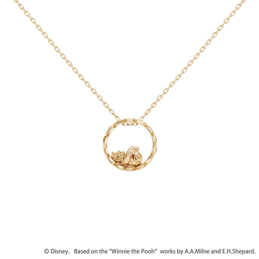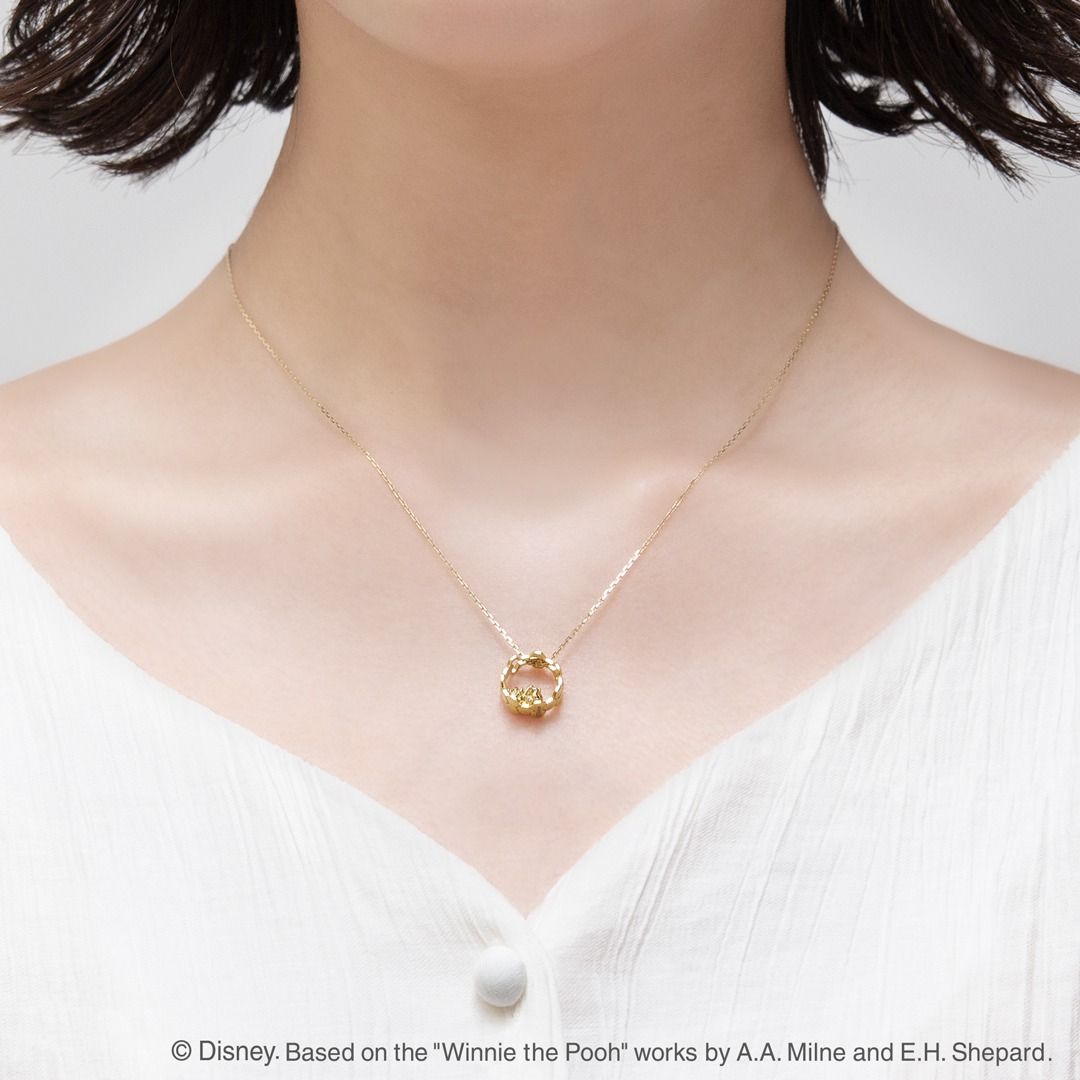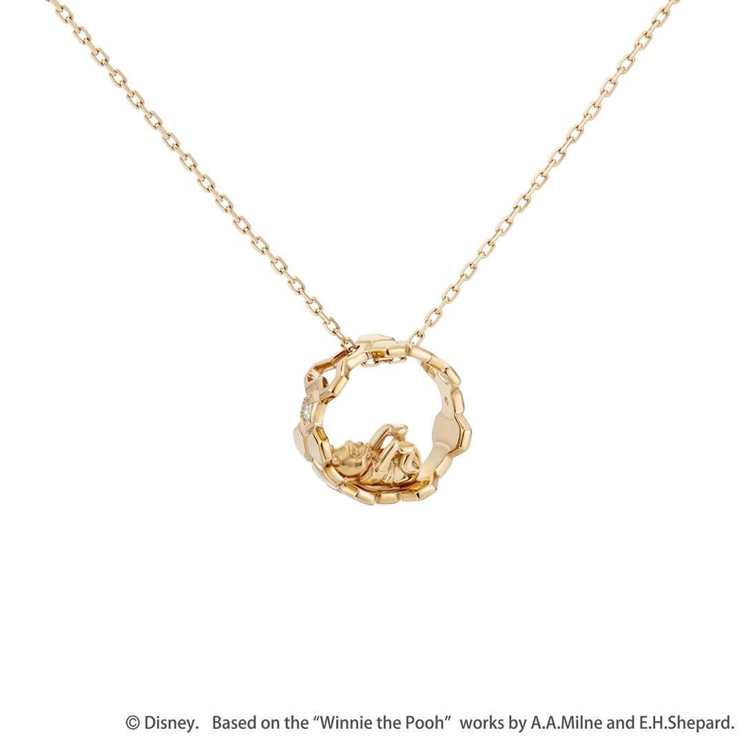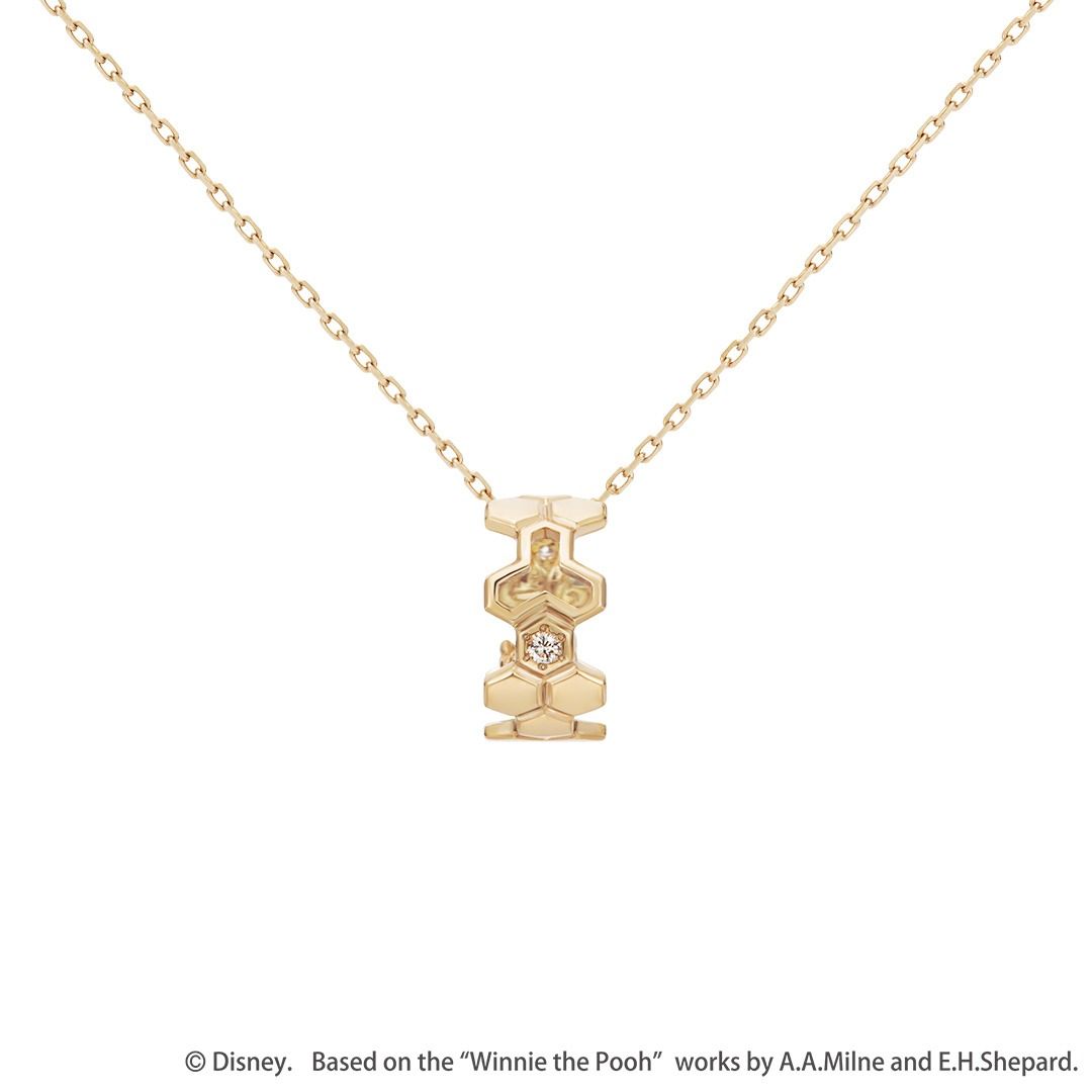 日本限定 Disney × k.uno 迪士尼 Happy honeycomb Winnie the Pooh 小熊維尼 K10金鑽石頸鏈